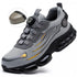 【Cushion & Lightweight Design】Crafted from ultra-lightweight woven fabric upper and air cushion, our steel toe sneakers offer complete breathability providing flexible rebound for maximum comfort during prolonged walking or standing. |